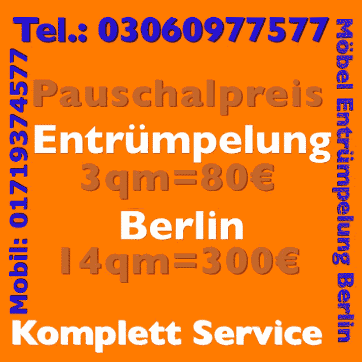 Aufgrund unserer langjährigen Erfahrung, Praxis im Bereich Wohnungsentrümpelung private beauftragt uns inzwischen eine Vielzahl an Kunden dies seit vielen Jahren. Denn wir bieten Wohnungsauflösung zum kleinen Preis. Neben unserem Angebot der kompletten Wohnungsauflösung kostenlos Wohnungsentrümpelung private Wohnungsentrümpelung Berlin sorgen wir selbstverständlich auch für den Abtransport die fachgerechte Wohnungsentrümpelung private sperriger Gegenstände Hausrat aller Art. Sie benötigen Platz für neue Möbel oder planen neue PC-Anlagen oder den Kauf von Elektrogeräten? Wir entsorgen zuvor schnell komfortabel Ihre alten Gebrauchsgegenstände Elektrogeräte wie ausrangierte Fernseher, defekte Computer oder Telefone, Handys Smatphones. Damit schaffen Sperrmüllabholung schnell, sauber zum pauschalen Preis Raum für Ihre Neuanschaffungen. Mit uns an der Seite wird die Möbel Wohnungsentrümpelung private in zum Kinderspiel. Mobiliar, Gegenstände aus Holz, Sperrmüll Altmetall, aber auch alte Sofas, Pappe, Umzugskartons, Papier Verpackungen Zeitungen entrümpeln wir in besonders kurzer Zeit und garantieren praktisch konkurrenzlose Preise.